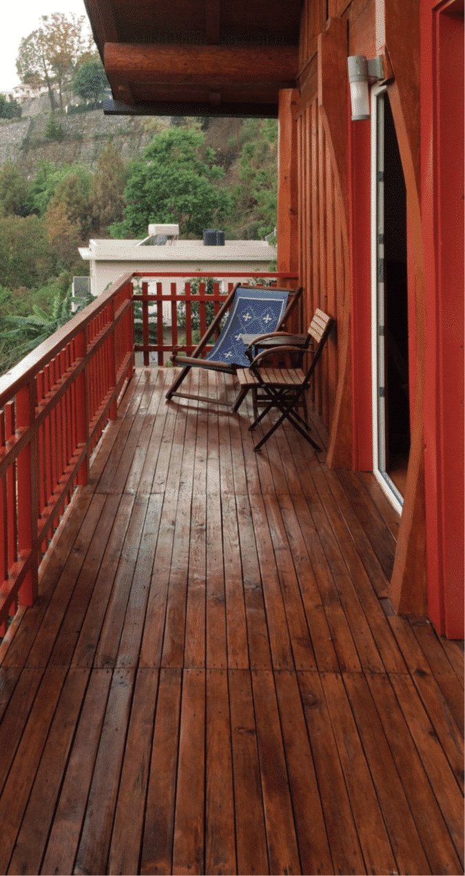 Die Ferien Lodge auf 1700 m ü.M. im Himalaya in Indien wurde 2x mit unserem Diotrol Edelwax UV beschichtet