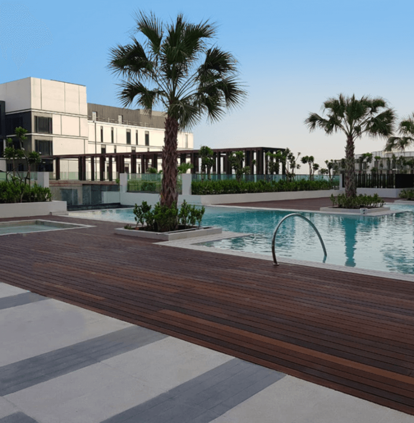 Das Terrassendeck in der Hotellanlage Ceasers Bluewaters in Dubai wurde einmal mit unserem Diotrol Golden Oil Onecoat Exterior beschichtet