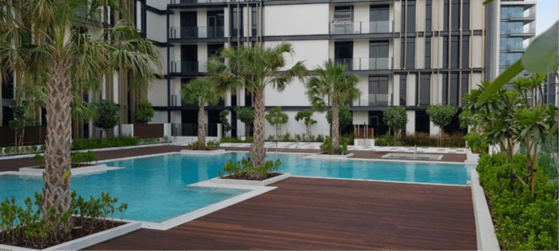 Terrassendeck in der Hotelanlage Ceasers Bluewaters, Dubai