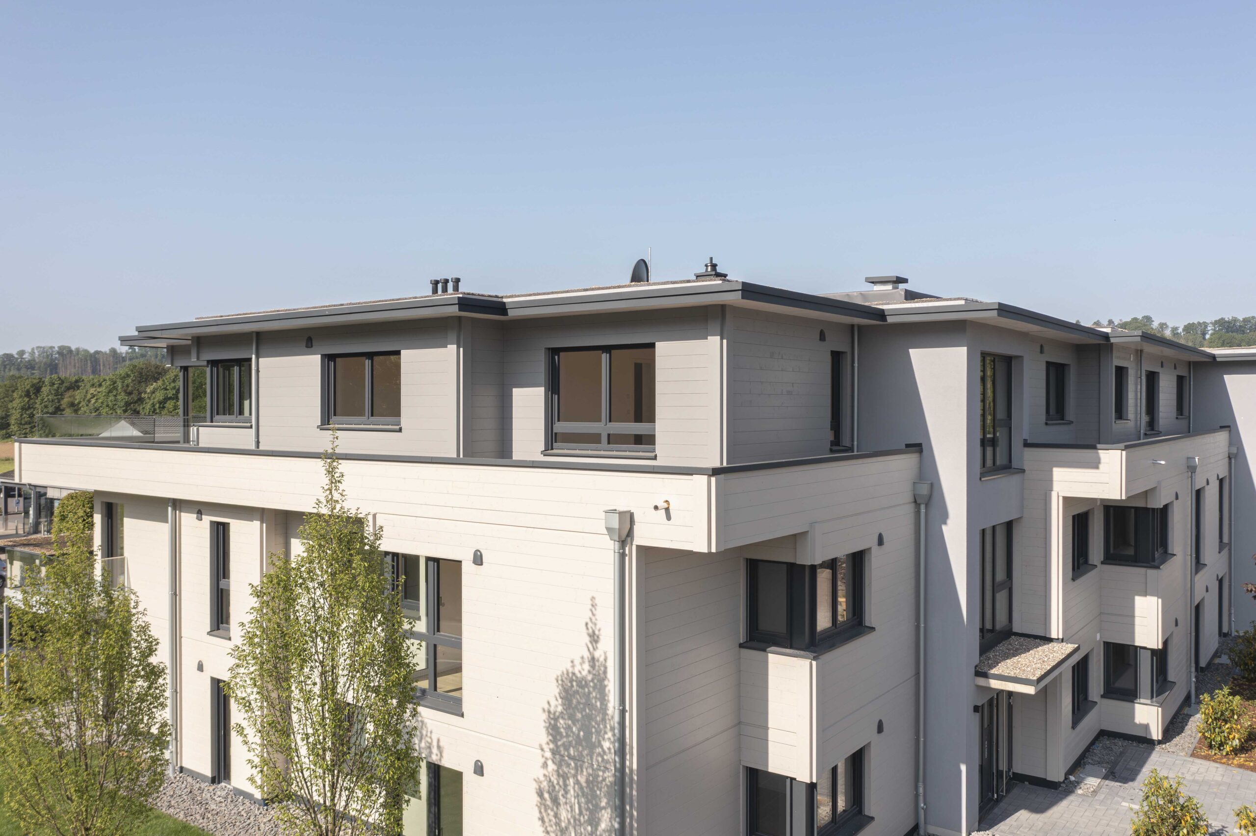 Dieses moderne Referenzobjekt ist das grösste realisierte Mehrfamilienhaus in Holzbauweise im Rhein-Sieg-Kreis und wurde 2023 fertiggestellt.Es wurde von dem örtlichen Hersteller für massive Holzhäuser, FULLWOOD WOHNBLOCKHAUS, produziert und errichtet. Die vorgefertigten Aussenwände bestehen aus massivem Holz, kombiniert mit umweltfreundlichen, nachwachsenden Dämmstoffen.